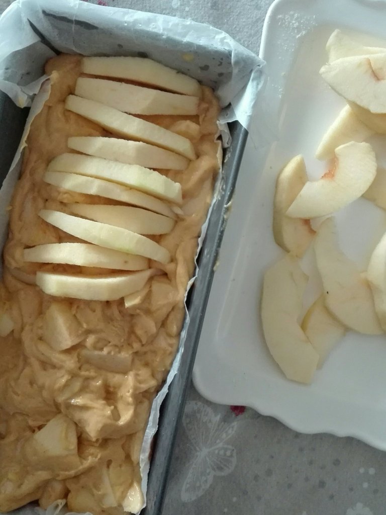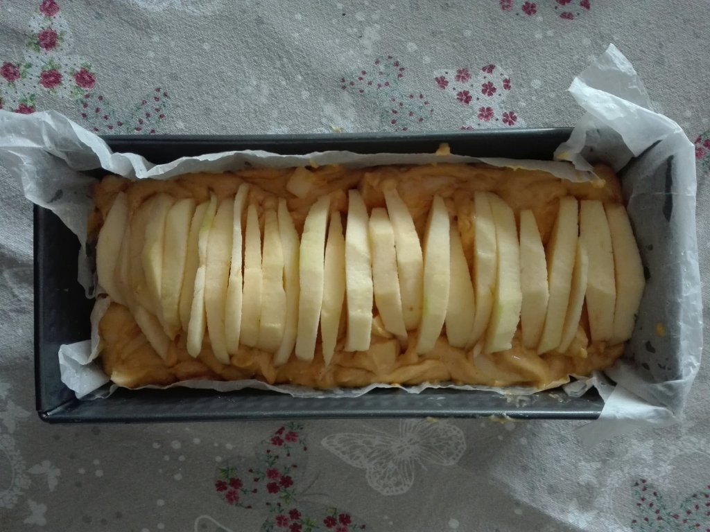 Prendere uno stampo da plumcake o se preferite uno stampo rotondo con o senza cerniera (26 cm. di diametro), foderate con carta forno leggermente inumidita e strizzata e versarci il composto. A questo punto prendere l’ultima mela, tagliarla a fettine e disporle una accanto all’altra facendo una leggera pressione affinchè affondino un pò nella torta. Cuocere in forno a 180° per 45′ circa e per essere sicuri che sia cotta fate la prova con lo stecchino che deve uscire asciutto! Quando il dolce si sarà raffreddato, spennellare con confettura di albicocche per renderlo più lucido e anche più goloso!