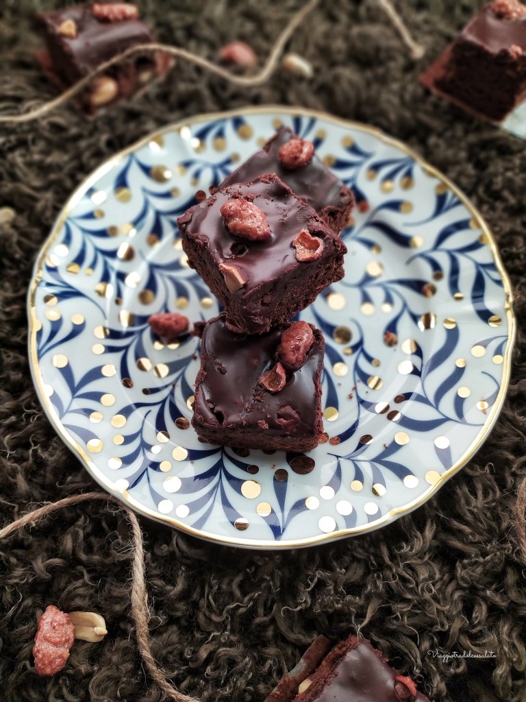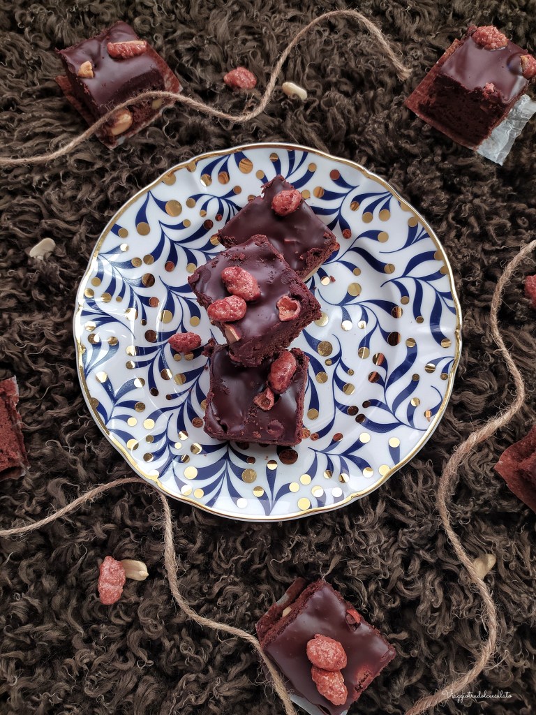 BROWNIES con arachidi e ganache al cioccolato fondente con ARACHIDI PRALINATE