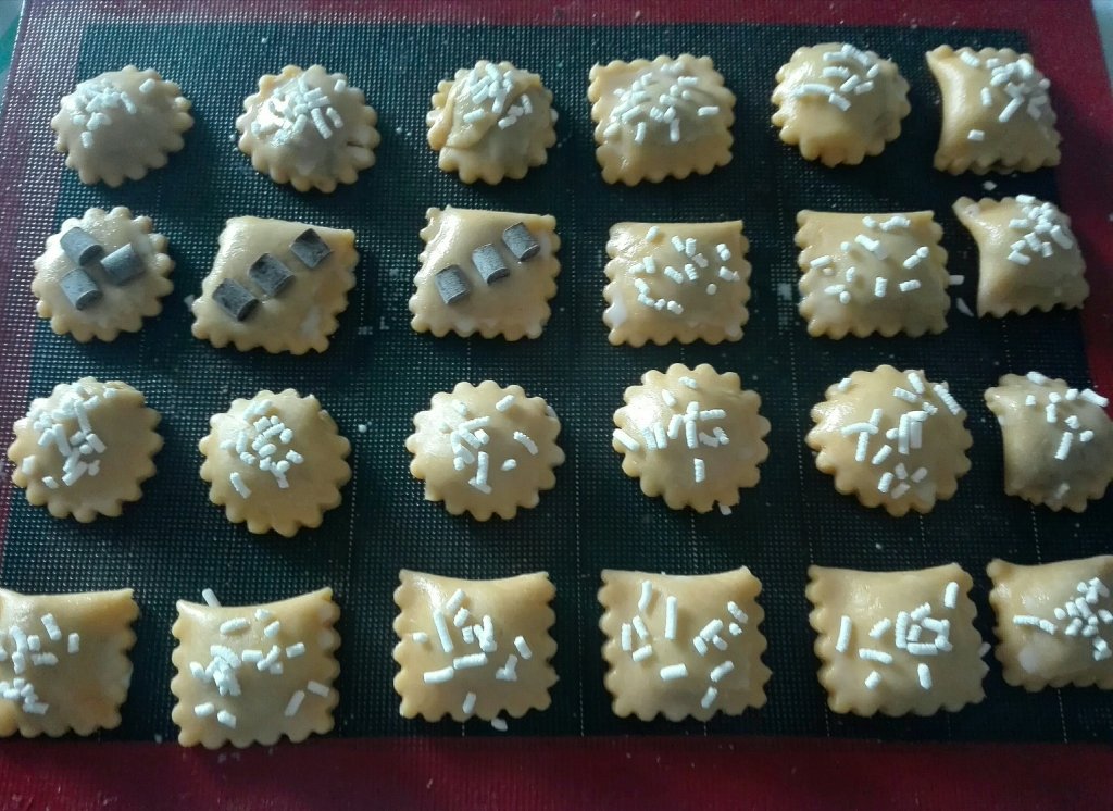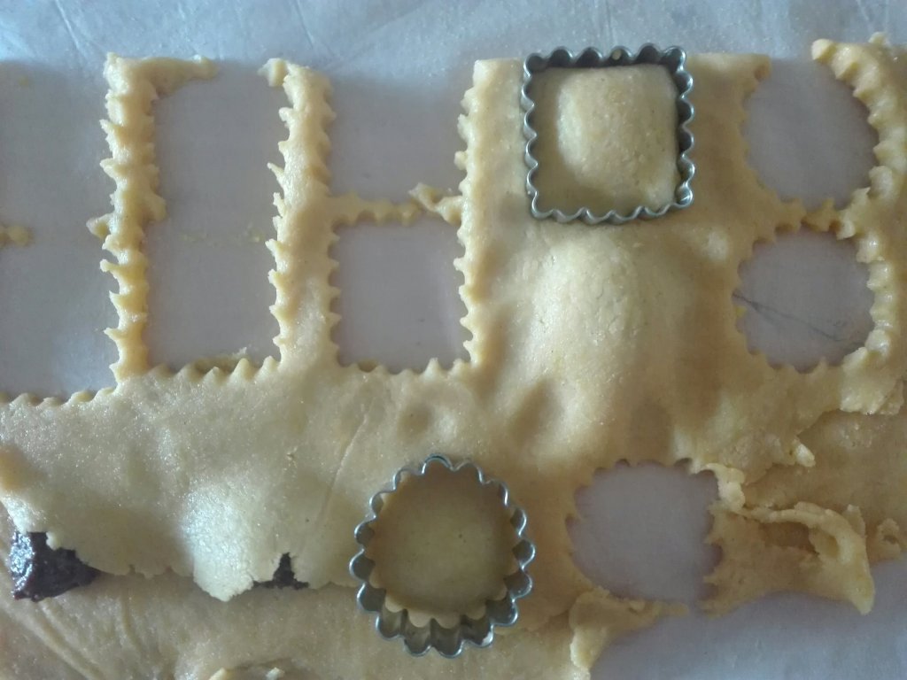 Appunti: con questa quantità di pasta frolla ci sono venuti circa 35/38 mini ravioli . Potete decidere la forma che più preferite ovviamente mettendo più ripieno se sono più grandi.