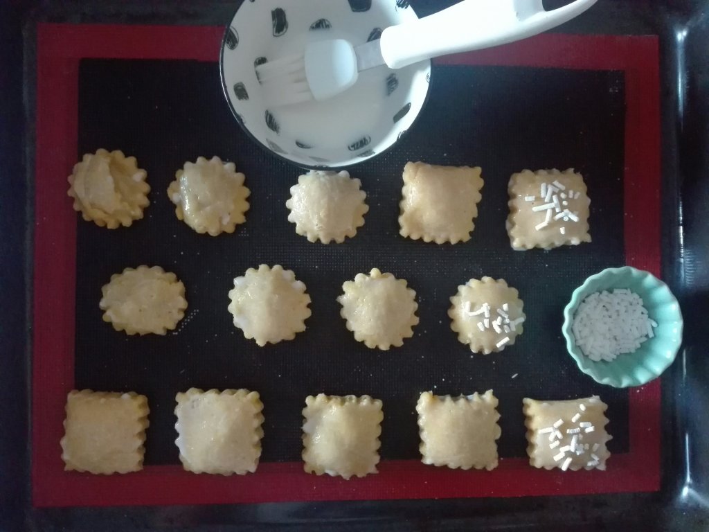 Cottura: forno caldo a 180° per 20 minuti circa fino a che diventeranno dorati. Controllate ogni tanto il forno perchè come per i biscotti è un attimo bruciarli.