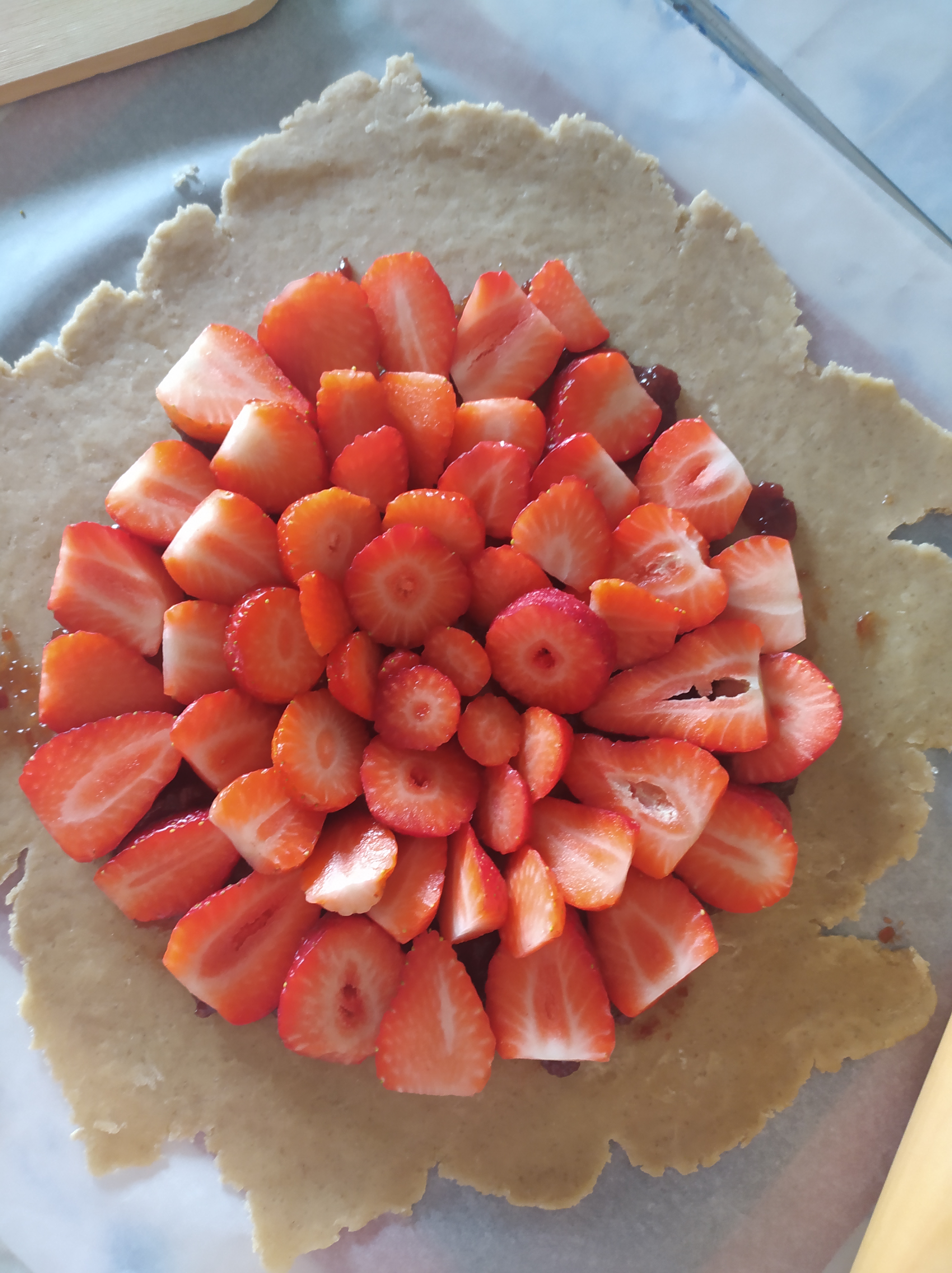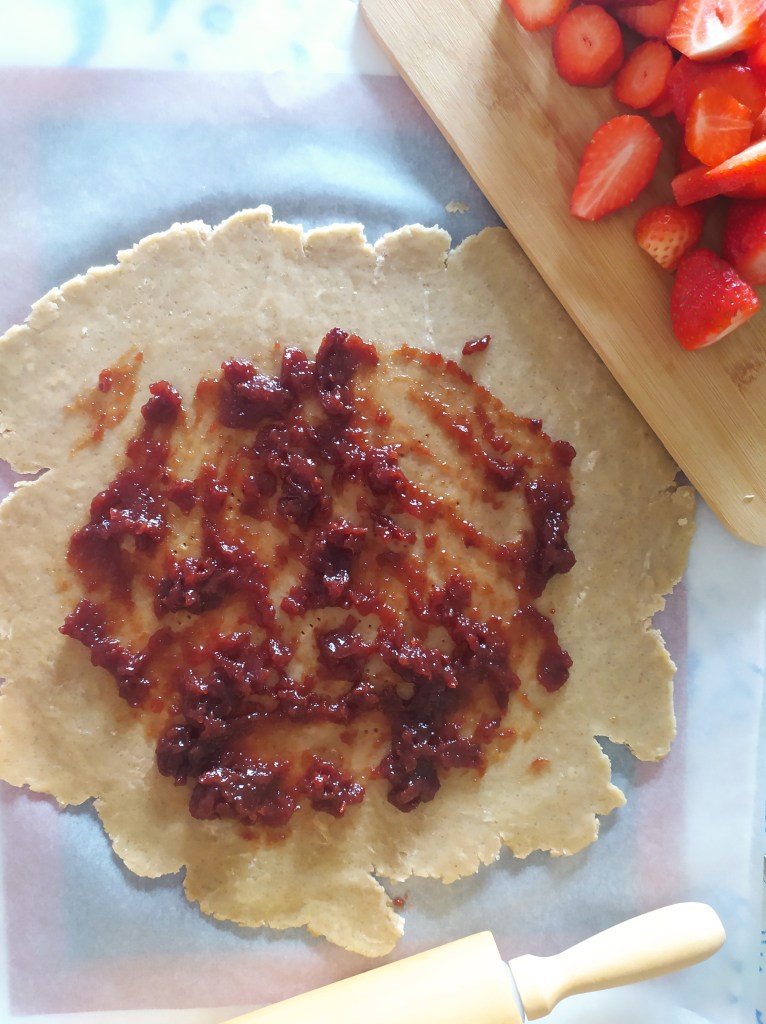 5_ Stendiamo un velo di confettura lasciando un paio di cm liberi di bordo