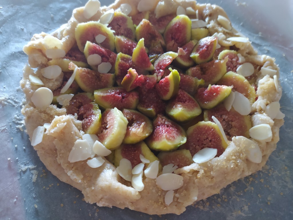 7_ Richiudiamo i bordi verso l’interno, spolveriamo con un po’ di zucchero di canna e frutta secca a piacere.