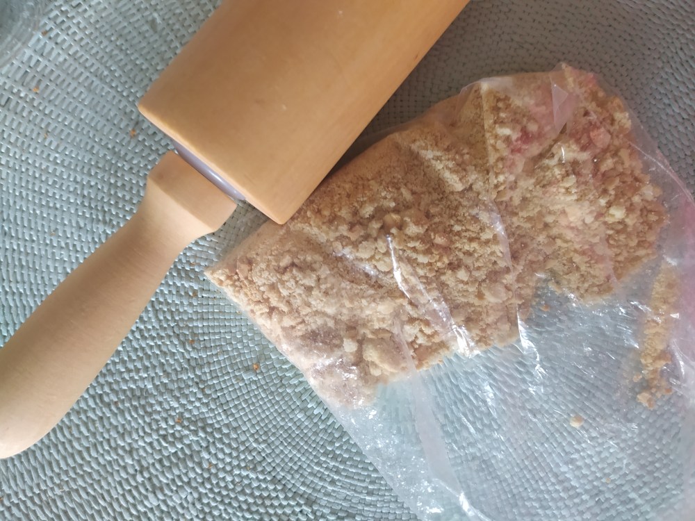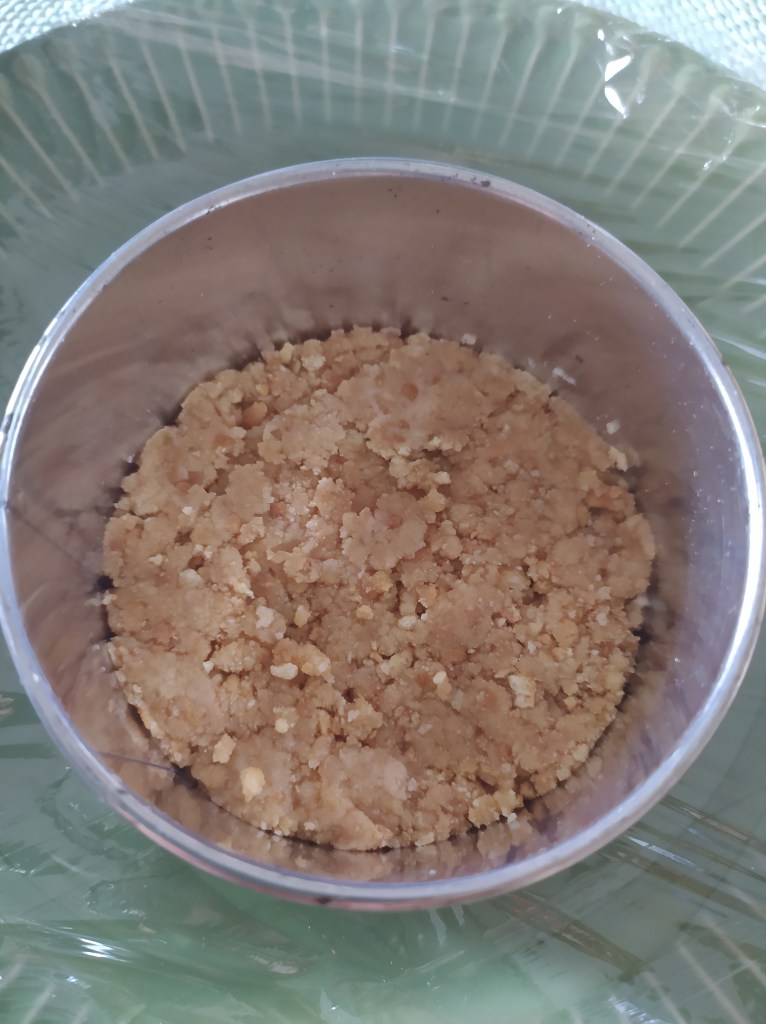 Per prima cosa tritiamo finemente i biscotti con l’aiuto di un mattarello, poi sciogliamo il burro in microonde per pochi secondi e lo uniamo ai biscotti insieme a un cucchiaio di latte. Mettiamo il composto alla base del cerchio di metallo e se avete i fogli di acetato rivestite l’interno, vi aiuterà a mantenere i bordi perfetti una volta sformato. Ma è un dettaglio che si può omettere. In alternativa all’anello di metallo potete utilizzare uno stampo monoporzione in alluminio foderato con pellicola.