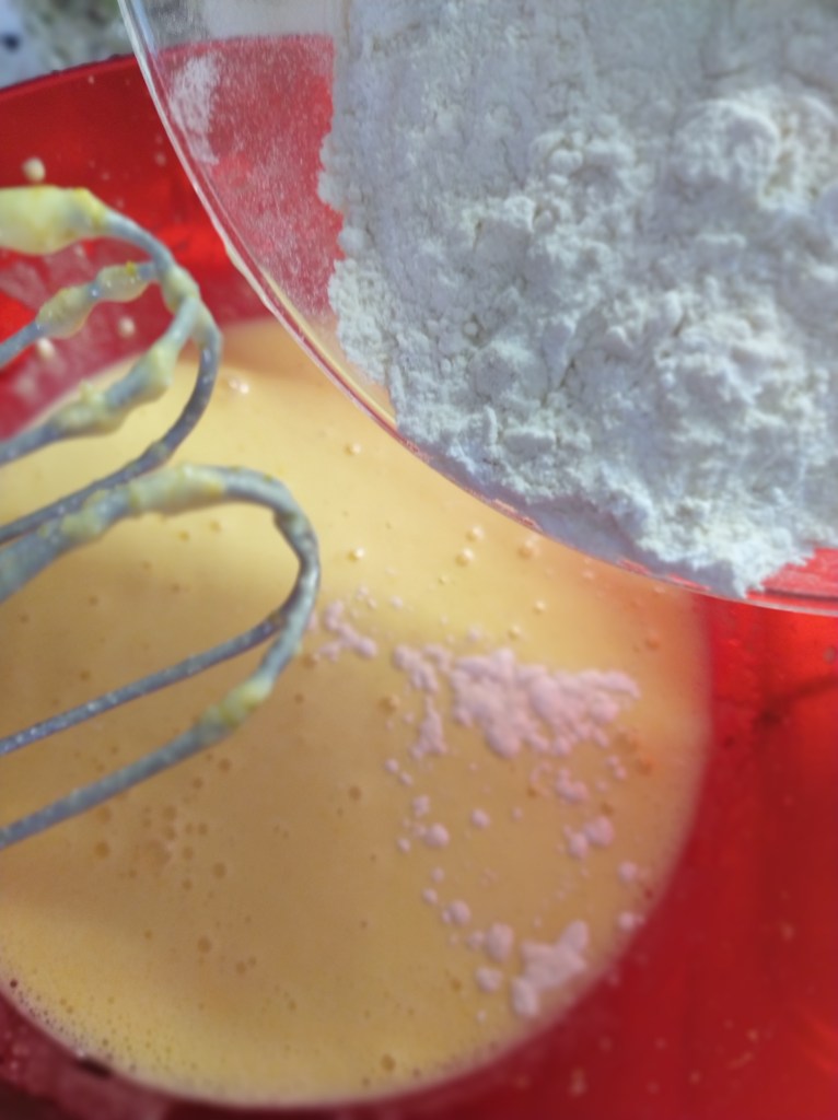 Setacciare la farina insieme al lievito e li aggiungiamo per ultimi. Intanto potete accendere il forno in modalità statica a 180°.
