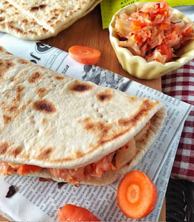 A questo punto potete decidere di farcirla direttamente con salumi e formaggi, con verdure o altro che vi piace, chiudendola in due oppure potete portarla in tavola divisa in spicchi e consumata al posto del pane .