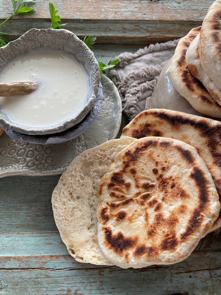 Queste FOCACCINE si preparano in pochi minuti e sono senza lievitazione. Ti basteranno davvero pochi ingredienti e pochi passaggi. Si stendono col mattarello e si cuociono in padella. Da quando ho iniziato a produrre il KEFIR in casa, non posso fare a meno di prepararle. Ottime da farcire, ma anche al posto del pane. Ma sapete cos’è il Kefir? Te lo spiego a fine ricetta.